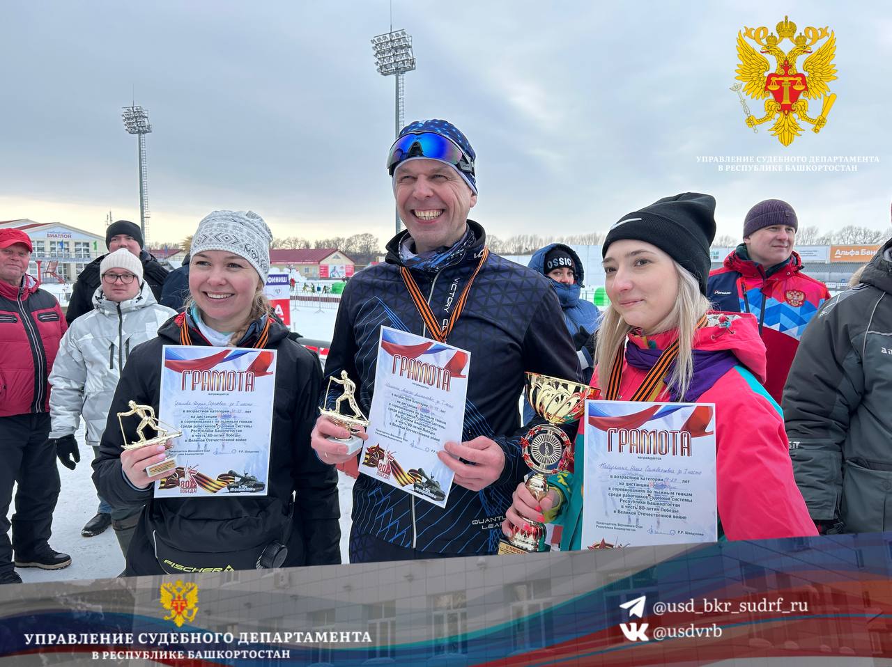 Управление Судебного департамента в Республике Башкортостан приняло активное участие в соревнованиях по лыжным гонкам 22 февраля 2025 года в спортивно-оздоровительном комплексе «Биатлон» прошли соревнования по лыжным гонкам среди работников судебной системы Республики Башкортостан в честь 80-летия в Великой Отечественной войне. На торжественной церемонии открытия соревнований среди почетных гостей присутствовали: Председатель Верховного суда Республики Башкортостан Раиль Шайдуллин; Начальник Управления Судебного департамента Республики Башкортостан - Роберт Усманов; Начальник Управления Федеральной службы безопасности РФ по Республики Башкортостан Игорь Кочнев; Заместитель Премьер-министра Правительства Республики Башкортостан - Ирек Сагитов; Заместитель Премьер-министра Правительства Республики Башкортостан - министр спорта Республики Башкортостан -Руслан Хабибов; Министр внутренних дел по Республике Башкортостан Александр Прядко; Руководитель следственного управления Следственного комитета РФ по Республики Башкортостан Владимир Архангельский; Председатель Госкомитета Республики Башкортостан по делам юстиции Владимир Спеле; Глава администрации городского округа г. Уфа Республики Башкортостан Ратмир Мавлиев. В соревнованиях приняли участие более 200 спортсменов из разных районов республики в возрасте от 4 до 72 лет. Активное участие приняли сотрудники Управления Судебного департамента Республики Башкортостан. В категории среди девушек от 19-29 лет почетное место - заняла ведущий специалист отдела по общим и юридическим вопросам - Набиуллина Юлия;![]() в категории среди девушек 30-39 лет почетное место заняла - начальник отдела бухгалтерского учета и отчетности - Громова Дарья;в номинации «Хумай» почетное место заняла - начальник отдела бухгалтерского учета и отчетности - Громова Дарья;в категории среди женщин 50-59 лет приняла активное участие главный специалист - Биккинина Минслу; ПОЧЕТНОЕ МЕСТО заняла сборная команда, в составе которой были: председатель Янаульского районного суда Республики Башкортостан Рафиков Рустам Рафисович, судья Салаватского межрайонного суда Республики Башкортостан Малинин Алексей Анатольевич, начальник отдела бухгалтерского учета и отчетности - Громова Дарья, ведущий специалист отдела по общим и юридическим вопросам - Набиуллина Юлия. |