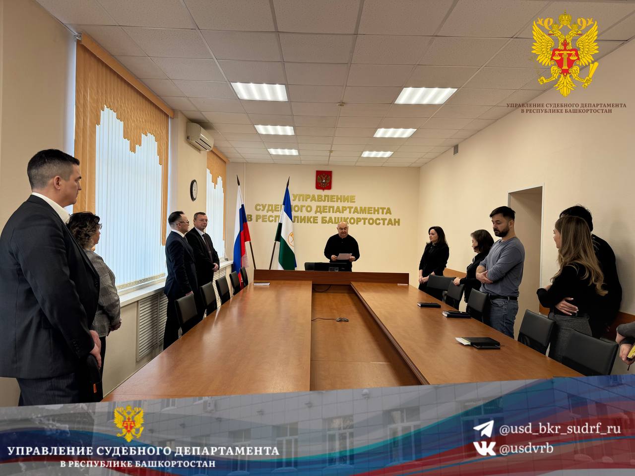 Начальник Управления Судебного департамента в Республике Башкортостан Роберт Усманов представил коллективу управления нового начальника отдела организационно-правового обеспечения деятельности судов и органов судейского сообщества – Вячеслава Чернова, его трудовая деятельность в судебной системе начинается с 2002 года, судья в отставке. Также представлена начальник отдела судебной статистики и правовой информатизации - Эльза Динисламова, работающая в судебной системе с 2003 года, ее трудовая деятельность была связана с Кировским районным судом г.Уфы.